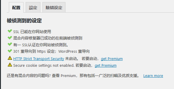 随着互联网发展,HTTPS目前非常流行,很多的网站都用上了https,但是有一个缺点:https是不允许有混合内容存在的。如果你的网站存在的时间比较久,就算你现在用了https协议,但是不可能让全站所有的都换成https,对于wordpress来说:最主要的就是图片,因为它的图片地址存的是绝对地址;如果你的网站有大量的图片全是用的http,除非直接update数据库里存的地址,个人认为菜鸟最好不要随便改动数据库,有备份还好,否则可能越改越麻烦。 今天将为大家介绍一个wordpress全站实现https插件,wordpress全站启用ssl也非常的简单,只需要安装、设置即可! 前提是,你的网站本身已经做了https,服务器部署好https服务,上传好ssl证书,否则不建议用此插件! 安装很简单,找到插件-安装插件-查找really-simple-ssl 安装 启用 这个大家都会,不详说了。 使用也很简单,前期工作做好了,插件只是需要把混合内容修正就好了。