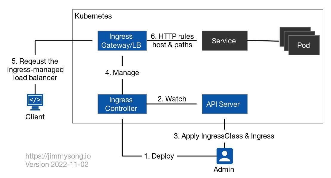 Ingress 的主要目标是用简单的、声明性的语法来暴露 HTTP 应用。你可以在 Kubernetes 中部署多种 Ingress Controller,并在创建 Ingress 的时候通过 IngressClass 指定该网关使用的控制器,或者在 Kubernetes 中设置默认的默认的 IngressClass。Kubernetes 默认只支持 AWS、GCE 和 Nginx Ingress Controller,同时还支持大量的第三方 Ingress Controller。