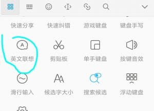 那么 字母取消呢,我这里是红米的小米版搜狗输入法,系统自带的,点左上角的四个小方块按钮取消英文联想